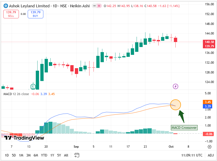 Ashok Leyland Limited, has recently shown a bearish MACD crossover, with the MACD line slipping under the signal line. Such a setup often signals weakening momentum, hinting at possible downside pressure and cautioning traders of a likely correction or continuation of a downward trend.