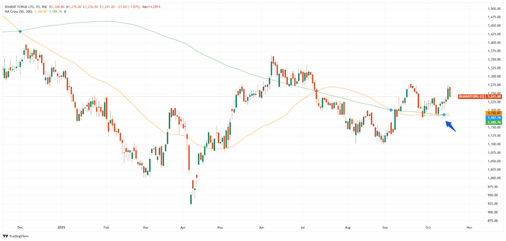 With market capitalization of Rs. 59,340 cr, the shares of Bharat Forge Ltd are closed at Rs. 1,241.60 per share, from its previous close of Rs. 1,265.20 per share.