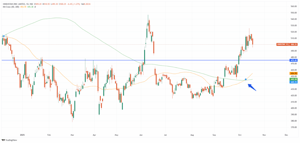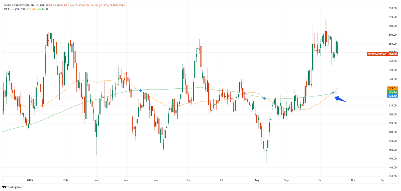 These Nifty 500 Golden Crossover stocks represent where the 50-day Simple Moving Average (SMA) has recently crossed above the 200-day SMA, a technical pattern known as the “Golden Cross.”