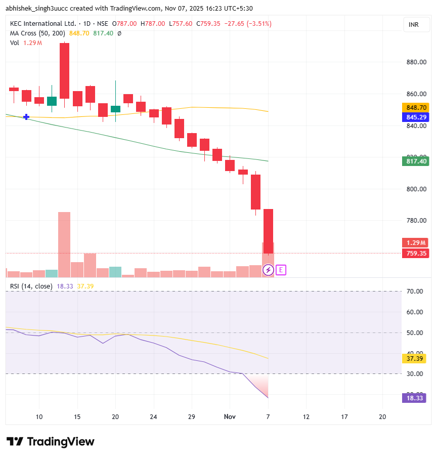With a market capitalization of Rs. 20,214 crores on Friday, the stock closed at Rs. 759 with an RSI of 18.33, indicating that it is in the oversold zone, offering the potential for an upside bounce.