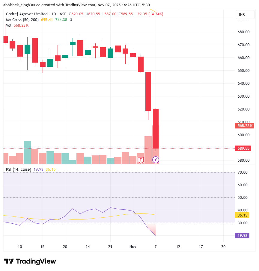 With a market capitalization of Rs. 11,356 crores on Friday, the stock closed at Rs. 590.00 apiece, with an RSI of 19.93, indicating that it is in the oversold zone, offering the potential for an upside bounce.