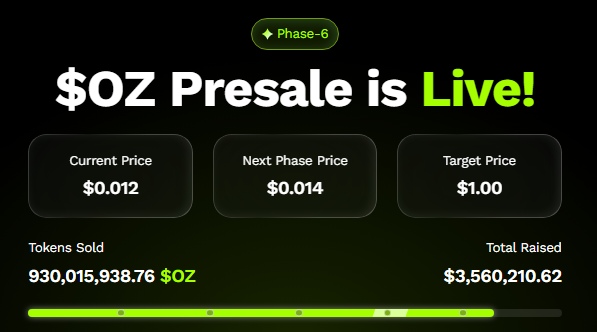 Now, analysts warn that Ozak AI (OZ) may be on a similar trajectory. With its presale already raising over $3.5 million and selling more than 925 million tokens at just $0.01 each, Ozak AI is building momentum that could rival Solana’s early days. For investors, the message is clear—missing Ozak AI now could mean missing the next Solana-sized breakout.