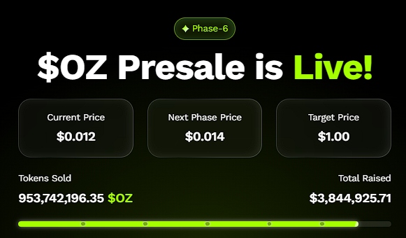 Ozak AI has rapidly become one of the most talked-about presales of 2025—and for good reason. Priced at just $0.0012 in its 6th OZ presale stage, the project has already raised more than $3.8 million and sold over 950 million tokens.