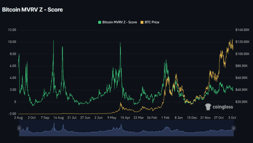 - High MVRV Z-Score: Bitcoin is trading well above average holder cost, which signals a possible overvaluation period.