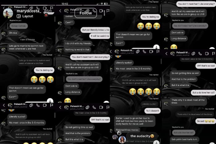 The controversy took an even more high pace when screenshots of Palash’s alleged flirty messages with another woman went viral online. These messages included invitations for outings and intimate talks thus sparked accusations of emotional cheating.