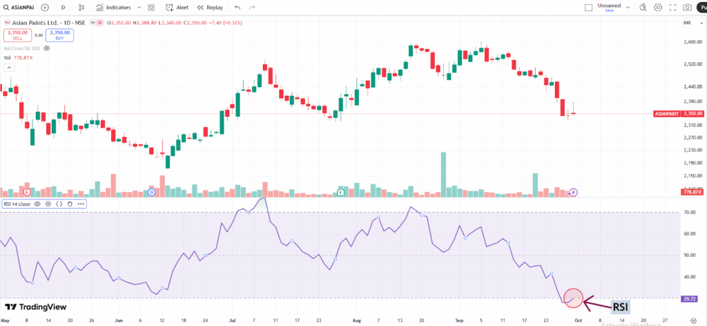 An RSI value above 70 indicates that the asset might be overbought, suggesting it could be overvalued and might experience a price correction. Conversely, an RSI below 30 indicates that the asset might be oversold, potentially signalling that it is undervalued and could experience a price rebound.