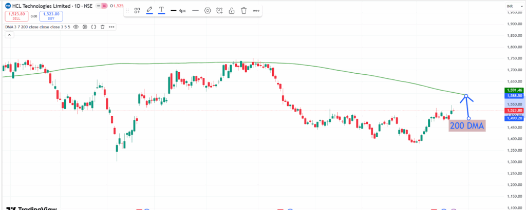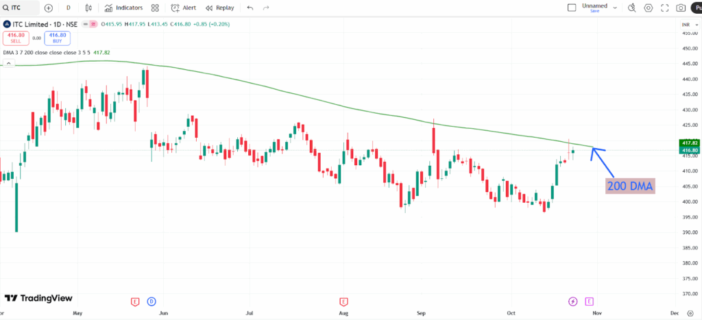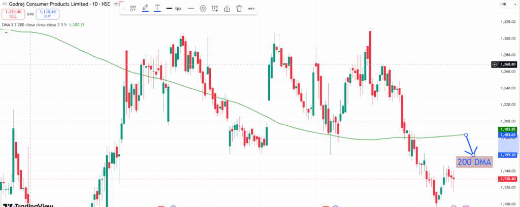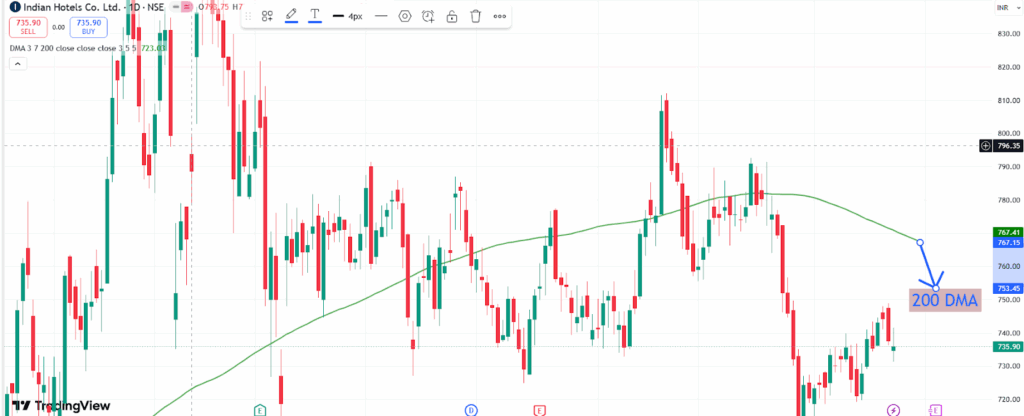 When a stock’s price is below the 200 DMA, it is often considered to be in a bearish phase. However, it could also present a buying opportunity if the stock shows signs of reversal or if it is oversold.