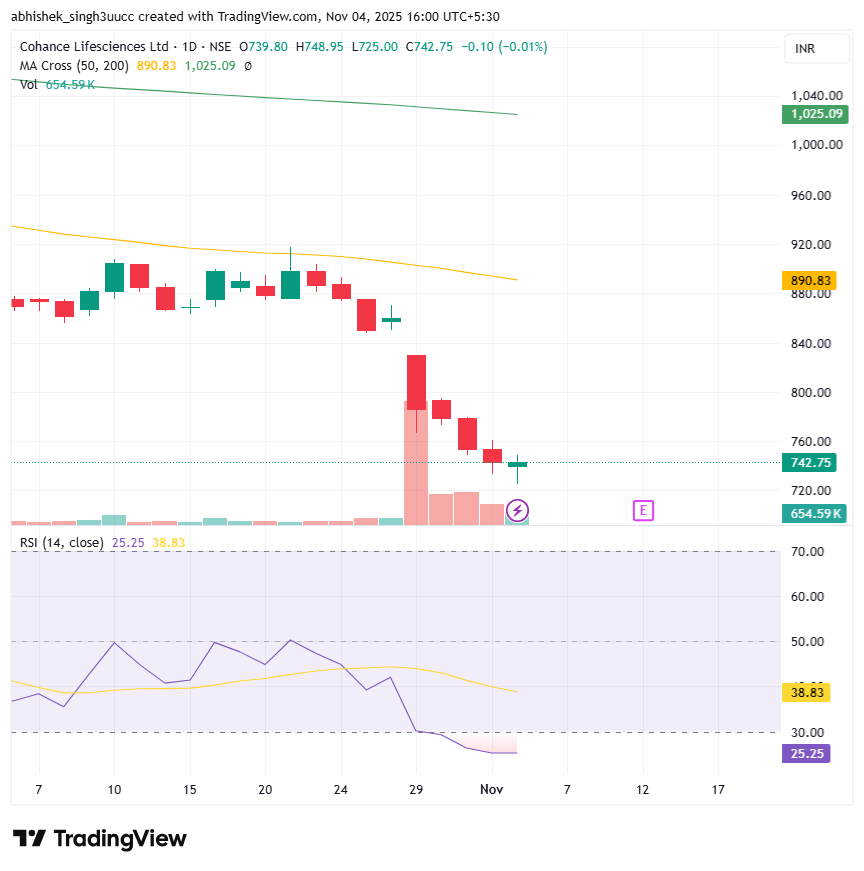 With a market capitalization of Rs. 28,459 crores on Tuesday, the stock closed at Rs 744 apiece, with an RSI of 25.25, indicating that it is in the oversold zone, offering the potential for an upside bounce.