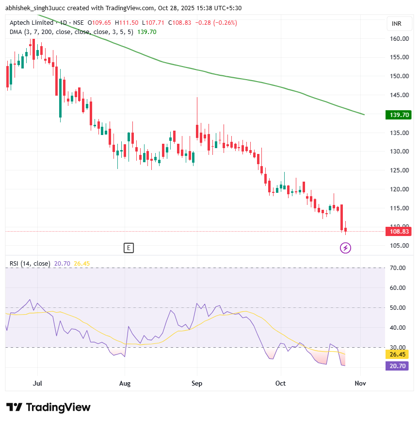 With a market capitalization of Rs. 629.91 crores on Monday, the stock closed at Rs. 108.60 apiece, with an RSI of 20.71, indicating that it is in the oversold zone, offering the potential for an upside bounce.