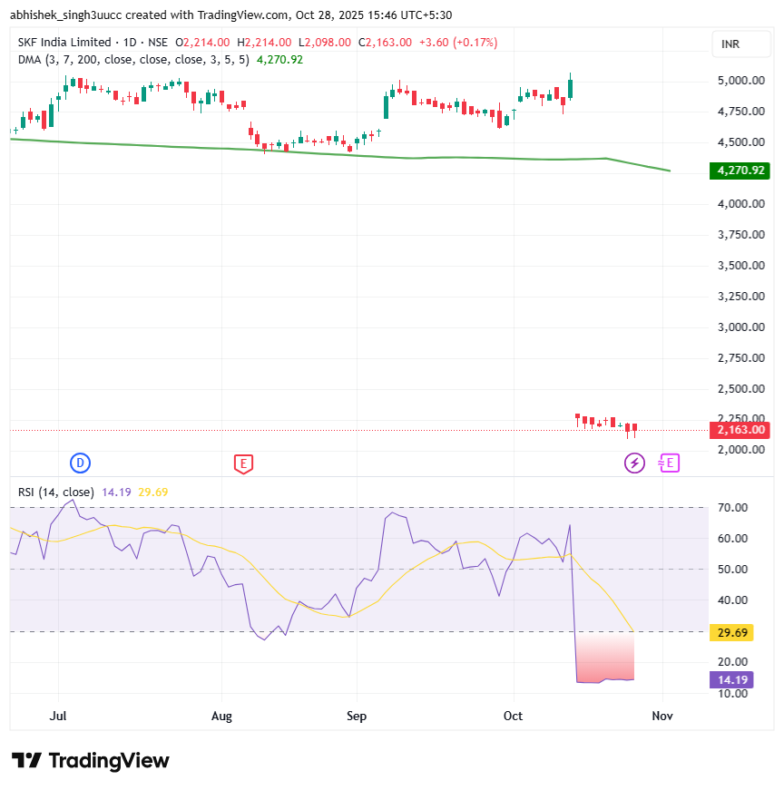 With a market capitalization of Rs. 10,748 crores on Monday, the stock closed at Rs. 2,174 apiece, with an RSI of 14.19, indicating that it is in the oversold zone, offering the potential for an upside bounce.