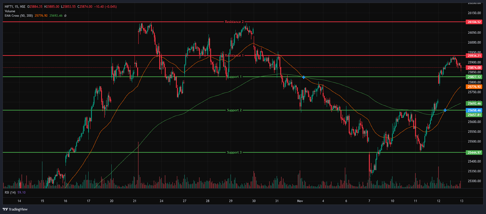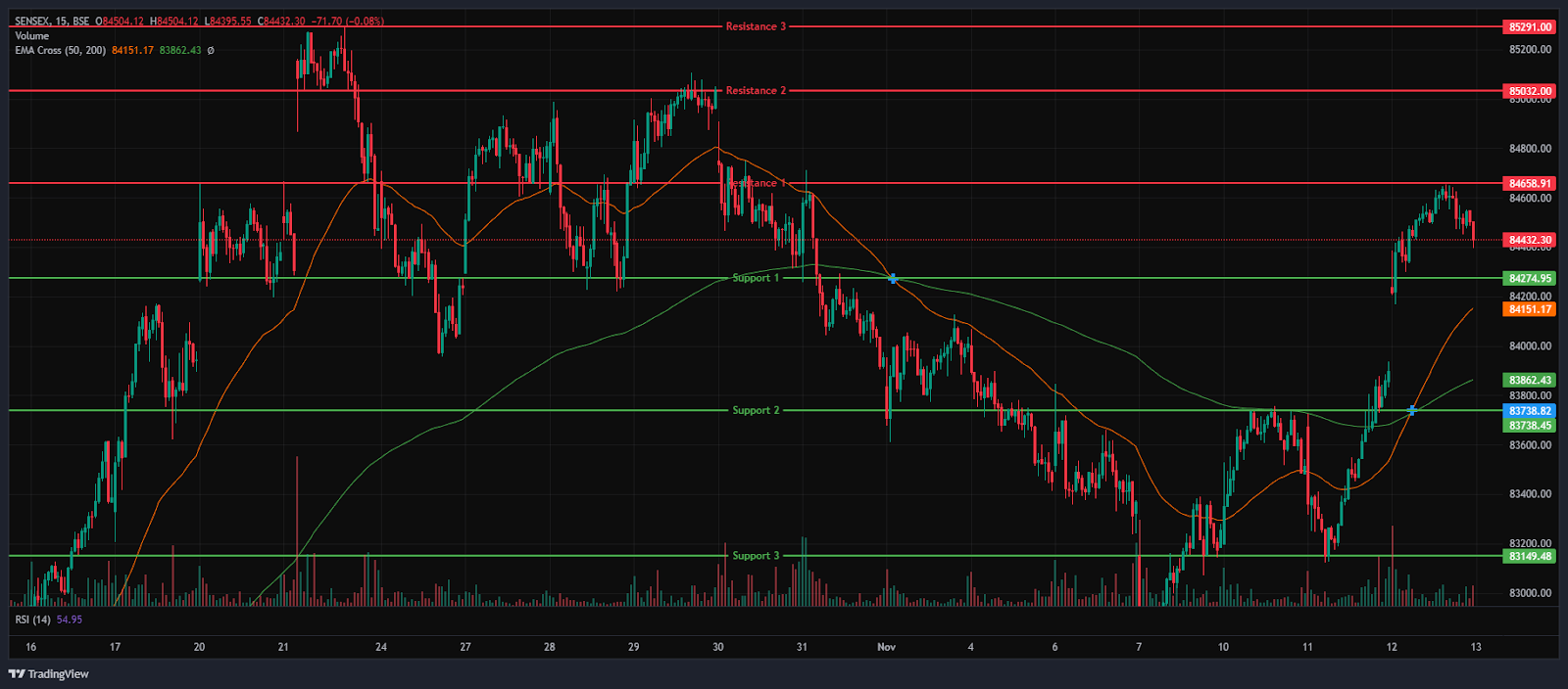 In this overview, we will analyse the key technical levels and trend directions for Nifty and BSE Sensex to monitor in the upcoming trading sessions. All the charts mentioned below are based on the 15-minute timeframe.