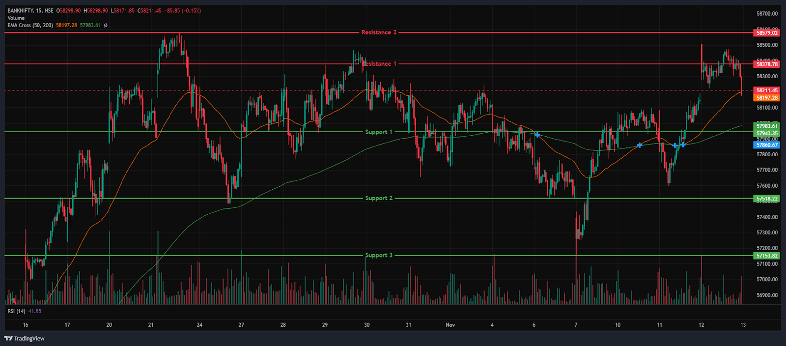 The Bank Nifty Index opened on a positive note at 58,505.35 on Wednesday, up by 367.2 points from Tuesday’s closing of 58,138.15. The index opened on a bullish note on Wednesday; however, in the morning session, it continued to trade in a range-bound manner, trading between 58,300 and 58,400 levels. In the afternoon session, the index continued to fall further and traded between the range of 58,200 and 58,400.